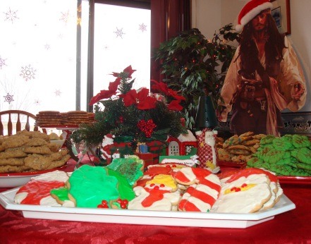 We all brought 7 dozen cookies to swap. We had Snickerdoodles, White Chocolate