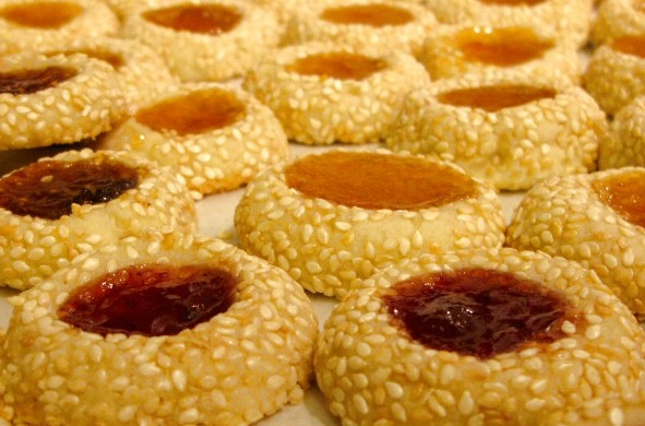 Shape the dough into 1-inch balls and roll in the sesame seeds. Place the